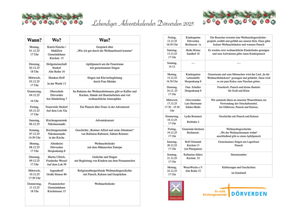 Lebendiger Adventskalender vom 1. bis 22. Dezember in Dörverden